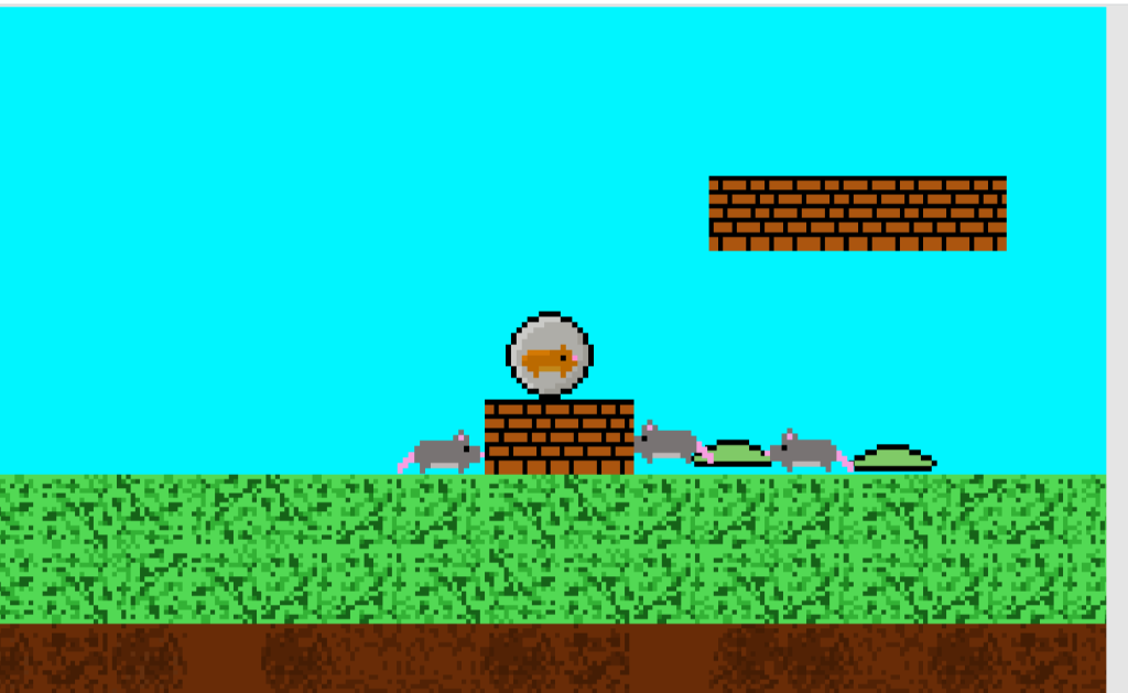 My fourth prototype is a side scrolling parkour game, I went for a pixel art or 16-bit style and stuck with the hamster and rat theme that I went for previously, however I added a second enemy type as I felt it added more variety to the game, it is a slime that works the same as the rat but adds some variety, I added some brick blocks similar to the Mario games as they were a way for me to add jumps into the game.