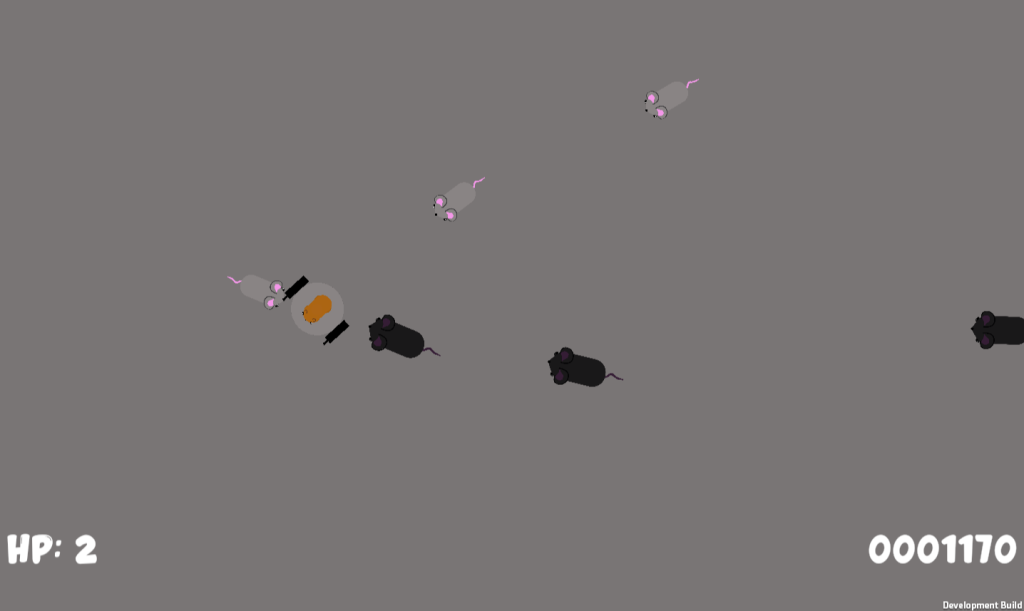 The enemies track the player using the target feature and follow the player and also look at the player whenever the player moves, there is 5 different enemies which are identifiable by the colour, the basic grey rat is the weakest with the turquoise, brown and purple ones increasing in speed with the purple being faster than turquoise and brown being the slowest aside from grey, then the black enemy is as fast as the purple enemy and also has more health and takes 5 shots to kill compared to the one of every other enemy.
